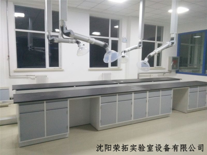 全鋼實驗台規格:邊台L*750*850mm,中央台L*1500*850mm。
